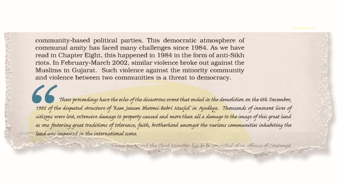 👉Two pages on the riots have been dropped from the Class 12 pol sc book. These pages provide the chronology of events -- a train full of karsevaks set on fire followed by violence against Muslims -- & refer to the criticism of the state govt in failing to control violence.