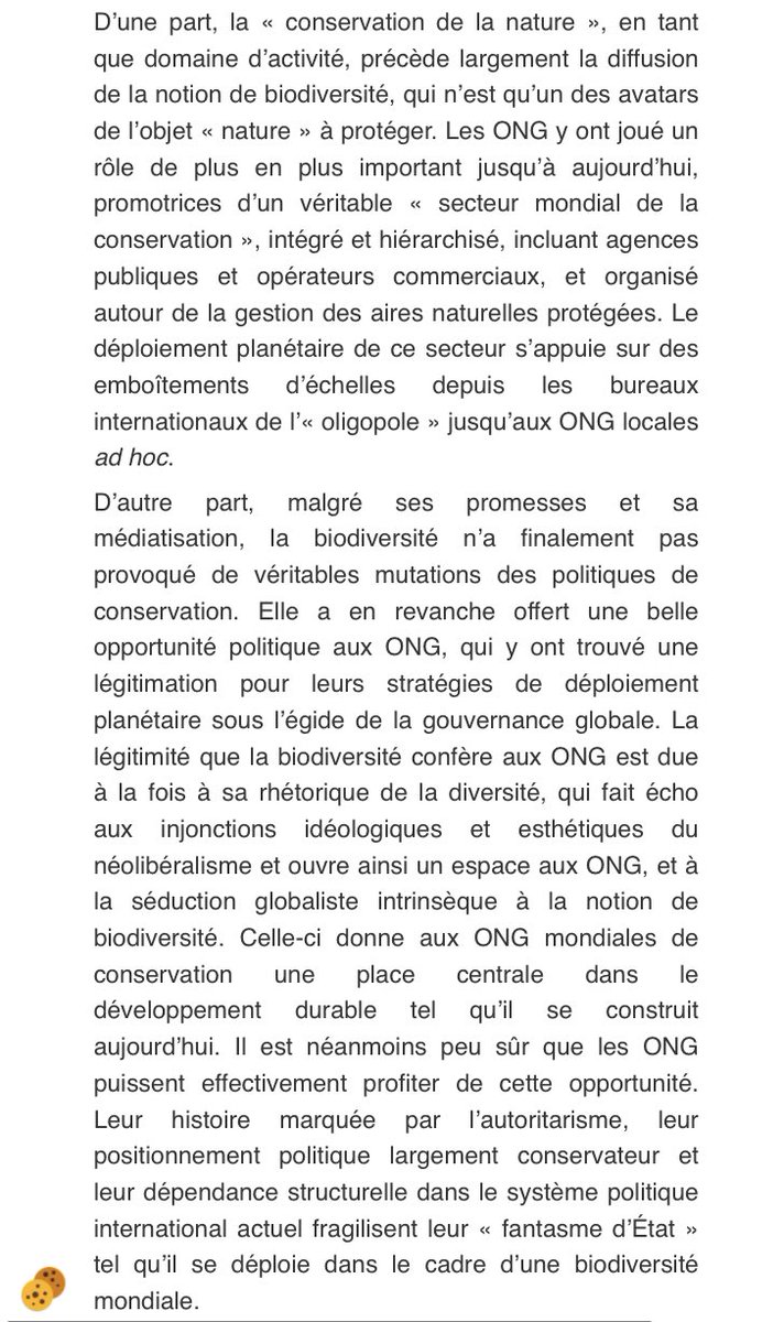 Ce réductionnisme de la lutte écologiste laisse le champ libre à des capitalistes voraces qui utilisent des programmes néocoloniaux pour acquérir, contrôler et exploiter des régions riches en biodiversité sous couvert de conservationnisme. books.google.fr/books/about/Th…