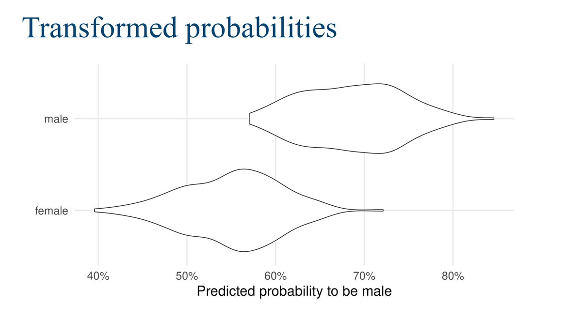 The predictions for male and female penguins overlap quite much. This leads to many incorrect classifications.
