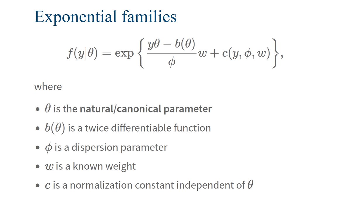 Exponential families are distributions whose density can be rewritten in a *very* special form.