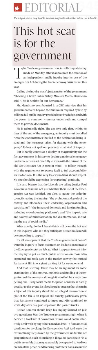 Of course the @globeandmail editorialists have a ludicrously hostile take on the inquiry under s. 63 of the Emergencies Act.