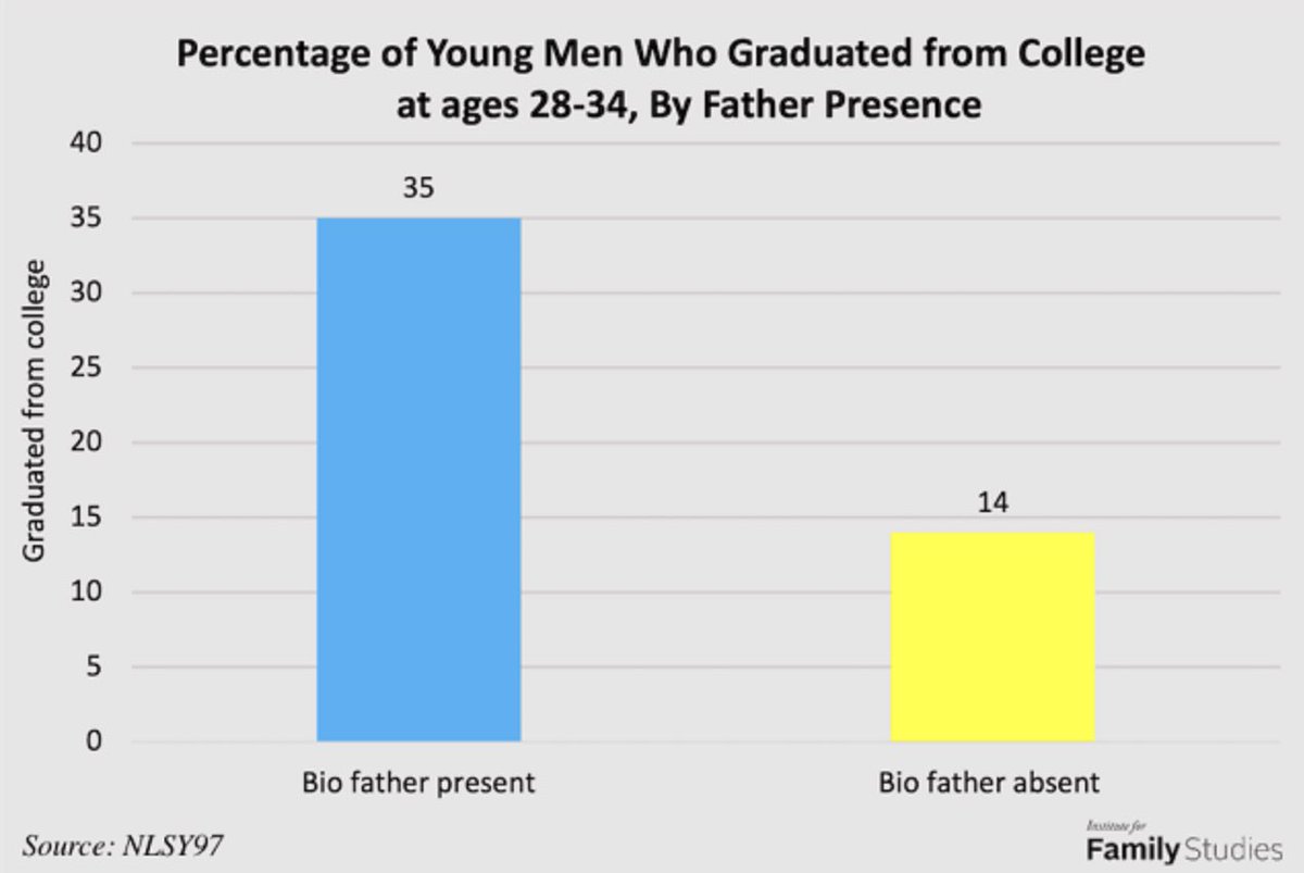 3. Young men raised apart from fathers much more likely to fall behind in school and not graduate from college. Striking difference here: