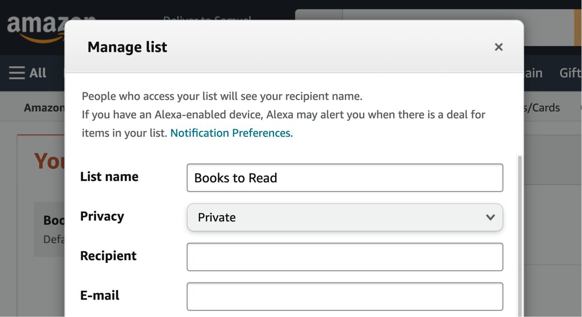 First, go to Amazon > Your Account > Your Lists.