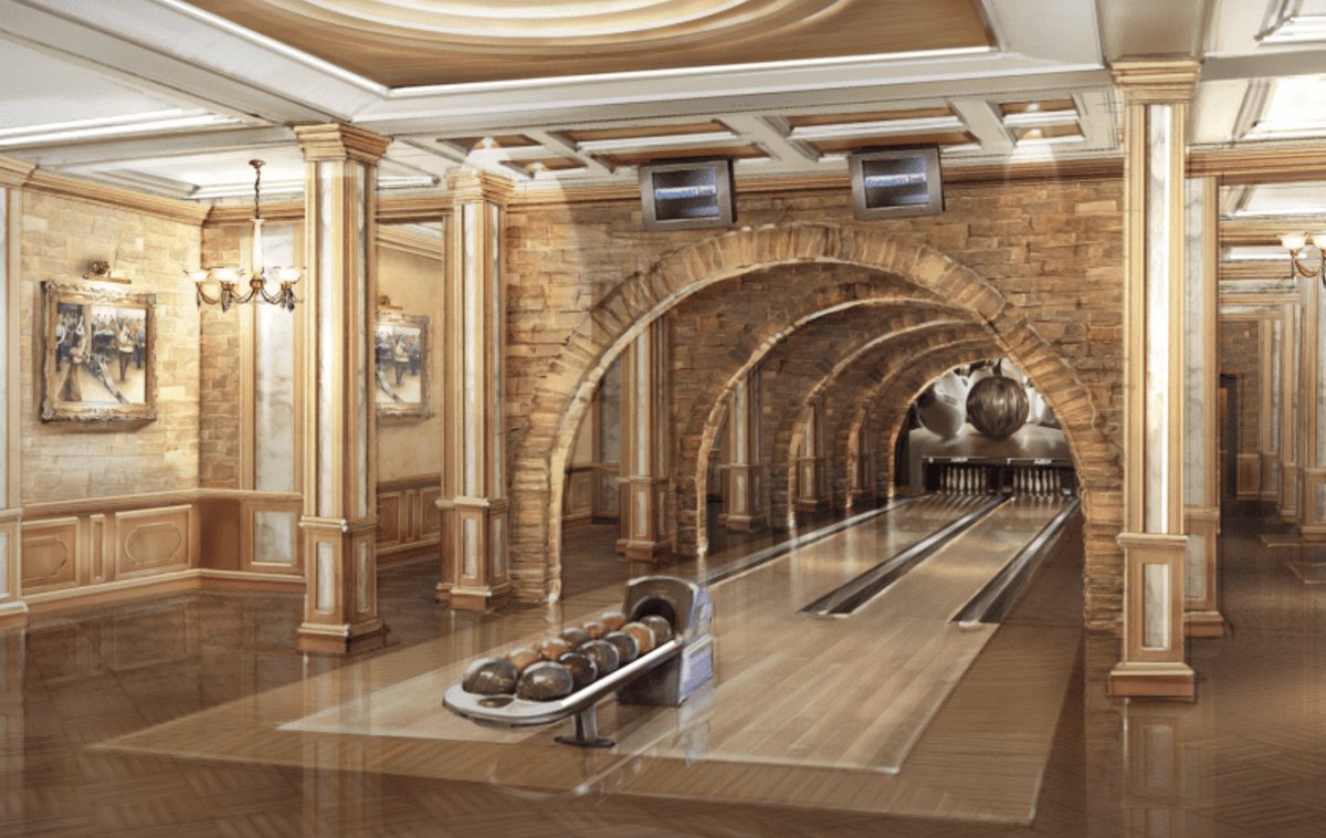 В новом дворце Миллера есть личный боулинг. Гольф-площадка (внутри). Каток (тоже внутри). Холодильник для шуб. Спальня с ванными и гардеробами площадью 320 метров.