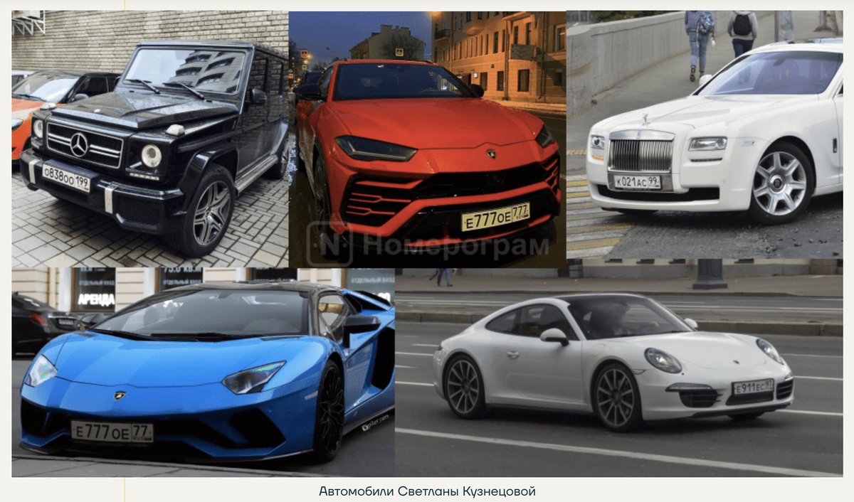 Ее дочь Светлана 11 лет была фиктивно устроена на работу в Газпром. Мужа ее дочери, Александра Кузнецова, сразу после свадьбы тоже устроили в Газпром. То есть оба отпрыска живут за наш с вами счет. Оцените их коллекцию автомобилей.