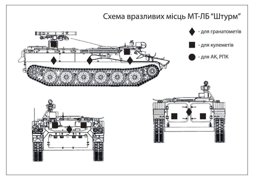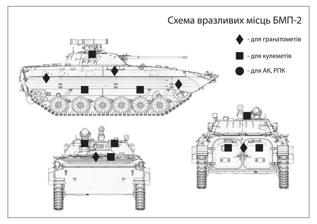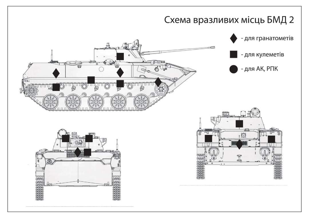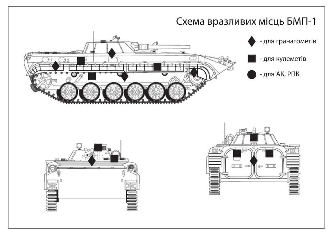 Für die Ausbildung der Rekruten haben die ukrainischen Streitkräfte Grafiken bzgl. der Verwundbarkeit von Fahrzeugen erstellt.