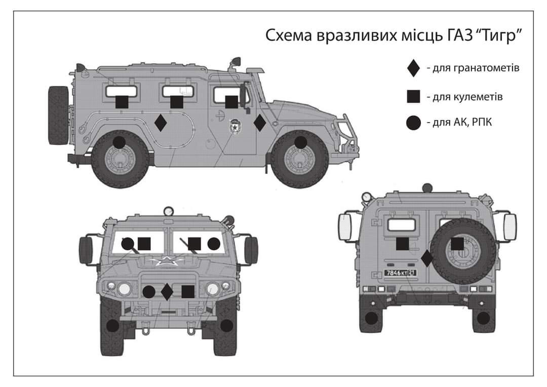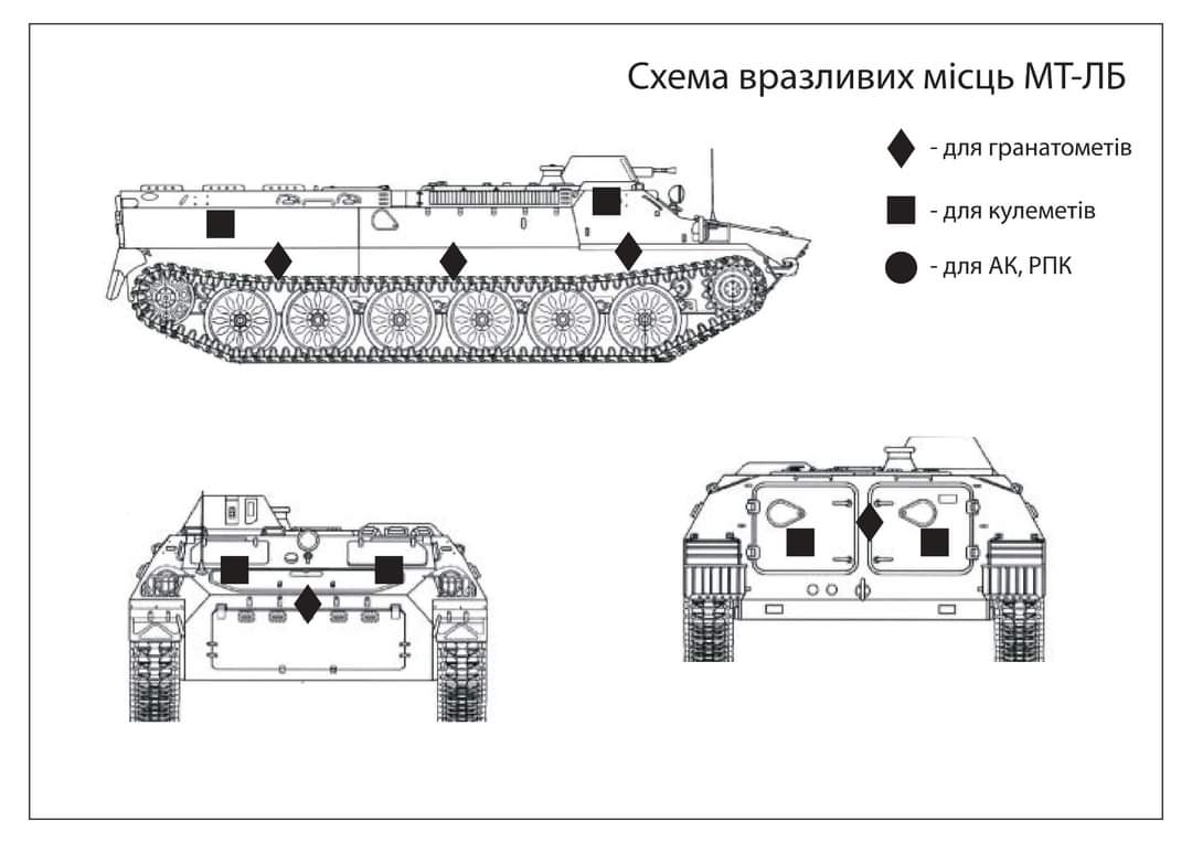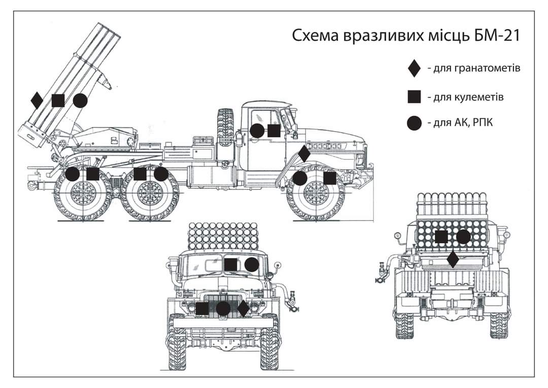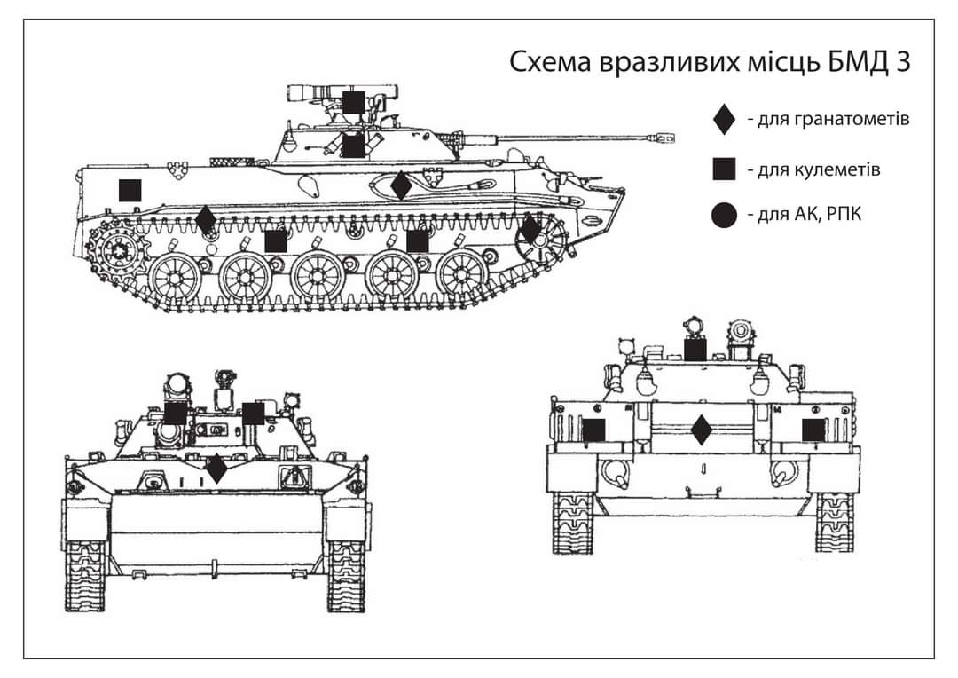 Für die Ausbildung der Rekruten haben die ukrainischen Streitkräfte Grafiken bzgl. der Verwundbarkeit von Fahrzeugen erstellt.