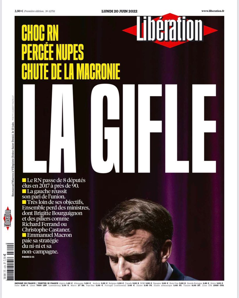 NEW: French #legislatives2022 projections indicate shock result- not that Macron should lose his majority (though this would be a significant margin and remains a blow) but Le Pen’s far right RN should gain so many seats. New left coalition in clear second.