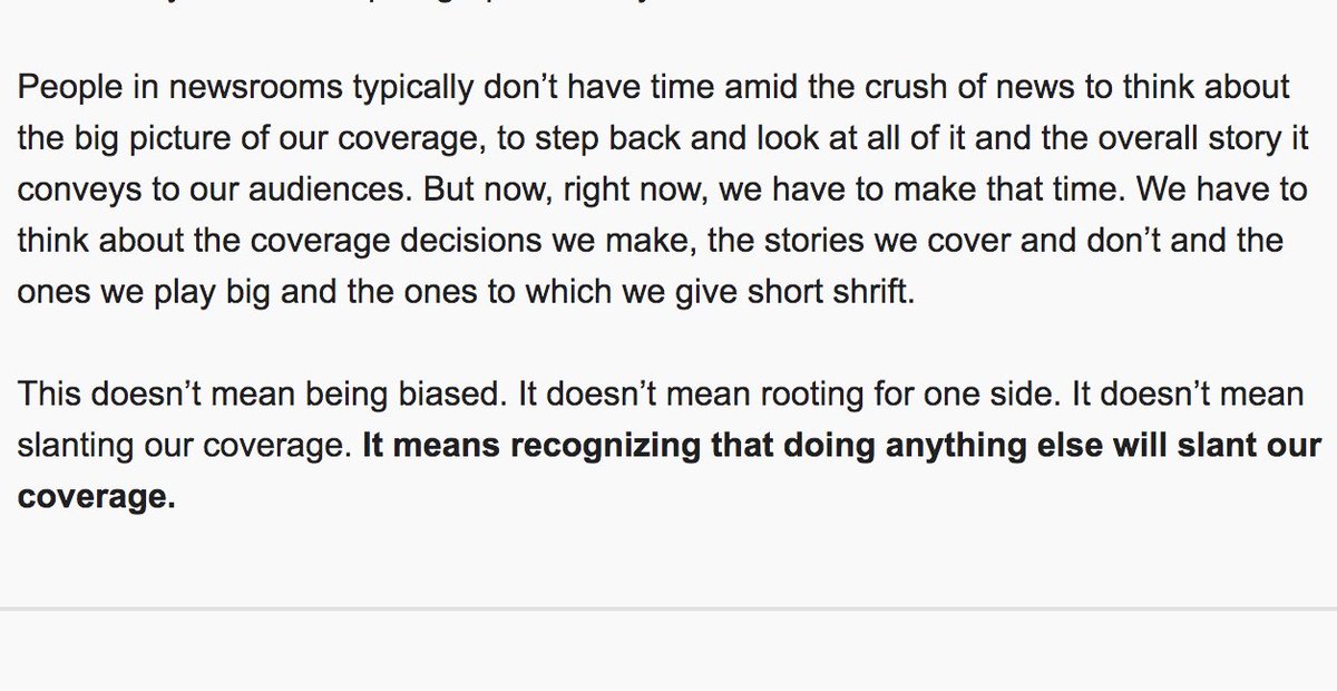 He said he had erred "in thinking of a news story as a stage that allowed Republicans and Democrats to perform their talking points, rather than as a way to inform readers." 5/