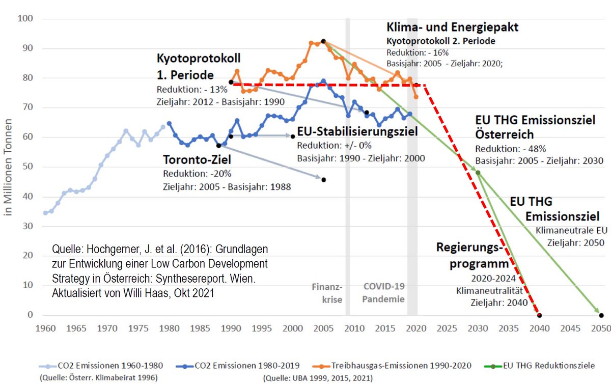 Hier ein Ja zu einem starken Klimaschutzgesetz, das AT auf den enorm steilen Zielpfad (rot) bringen kann, dort ein Ja zu einem höher dotierten Transformationsfonds etc. Rosinenpickerei bringt niemand weiter & macht die @WKOe in Sachen Klimaschutz einmal mehr lächerlich, zurecht.