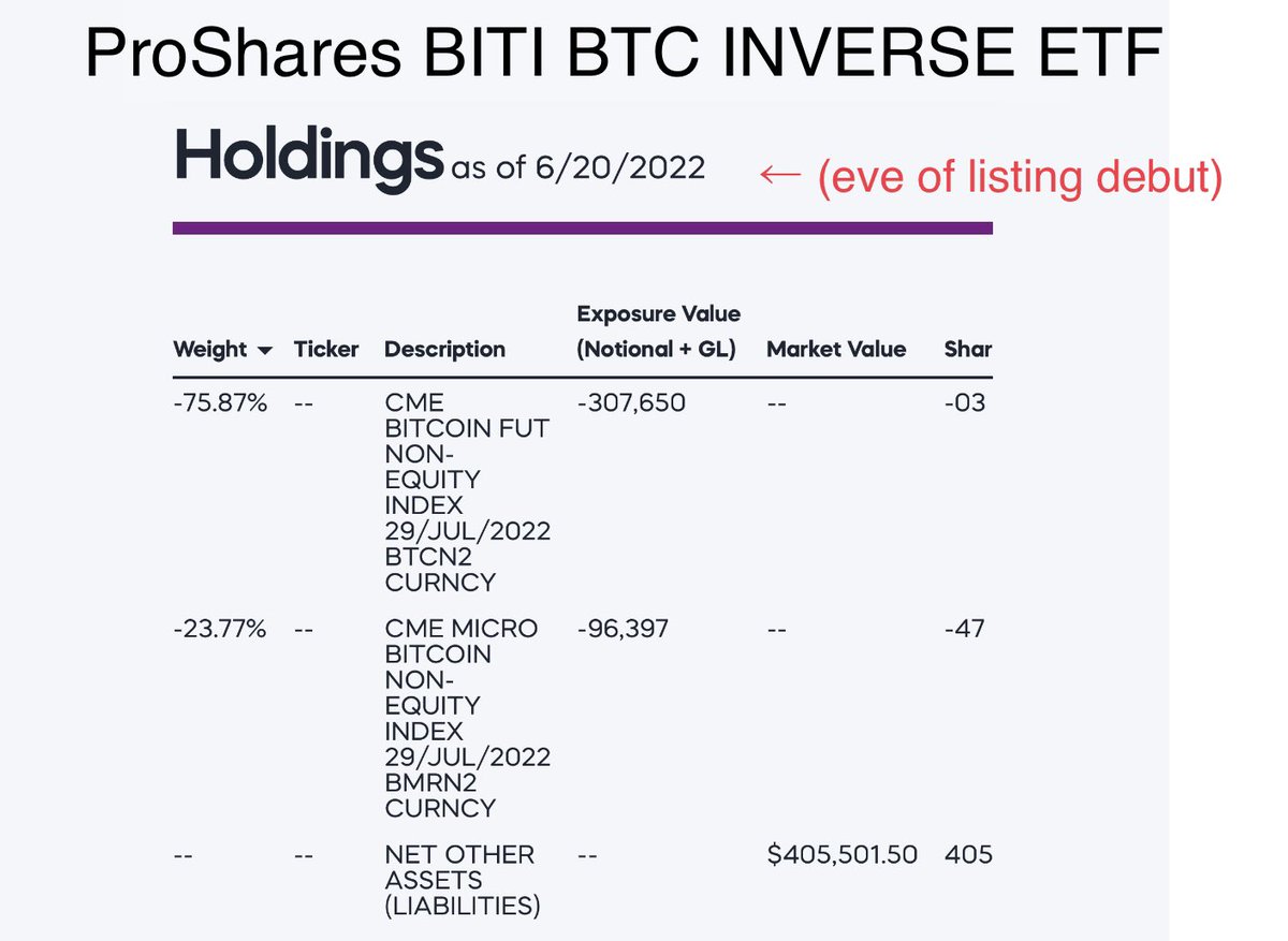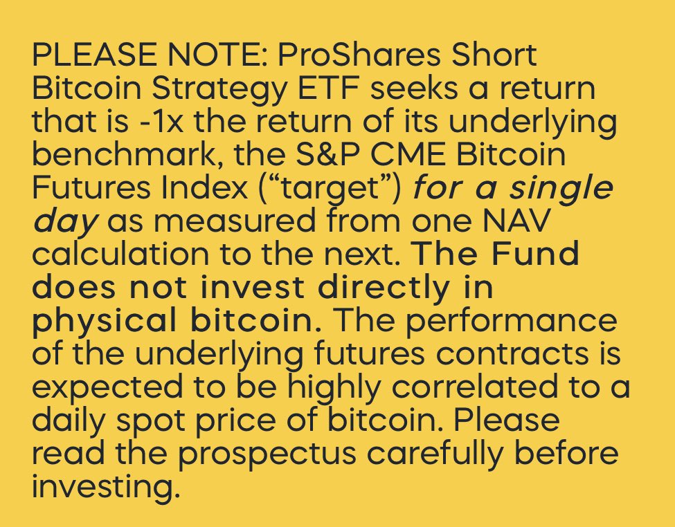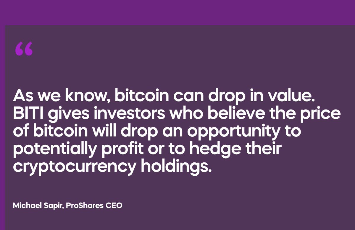 ProShares $BITI, the 1st 🇺🇸 listed short BTC (futs) ETF, announced yesterday for debut today