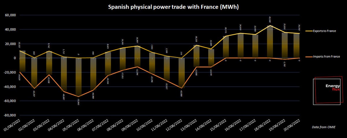 The cap also *reduces* wholesale Iberian power prices, incentivising exports from Iberian peninsula into 🇫🇷FRA