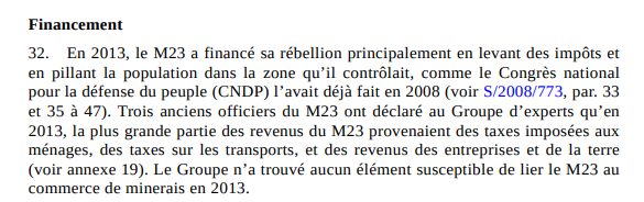 6 On effet, il est bien documenté comme indiqué plus haut que le M23 taxent les familles qui vivent sur les territoires qu'il contrôle. Donc même là ils sont en train d'essayer de profiter de la population.