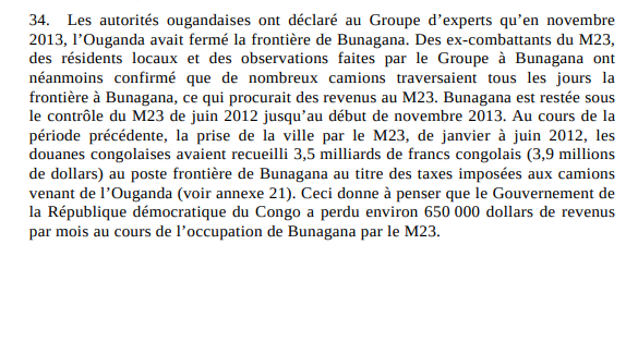 2/ Le @GouvNordKivu suspend l'importation et l'exportation des marchandises par le poste frontalier de #Bunagana qui est sous occupation du M23. Pour comprendre l'importance stratégique de cela, il faut consulter le rapport des experts de l'ONU de 2014 sur le financement du M23.