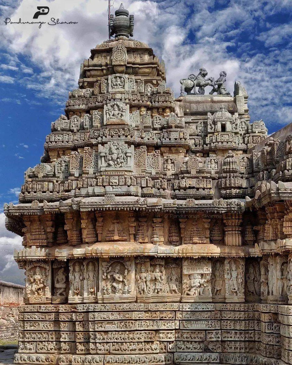 Shikara, Kalasha and the Hoysala Royal crest atop the Mahanasa (Protruding region in front of the Shikara) of Mallikarjuna temple at Basaralu, Karnataka,BHARAT
