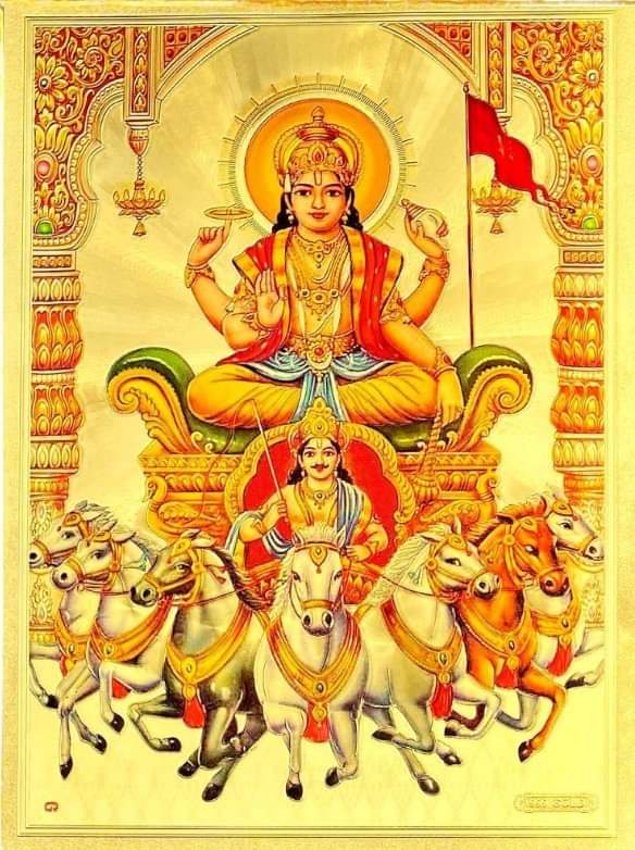 Surya Dev has 12 forms called Dwadash Aditya. Every month, the Sun God takes one form in a Sign (Rasi) and his chariot is composed of 6 other members each month.