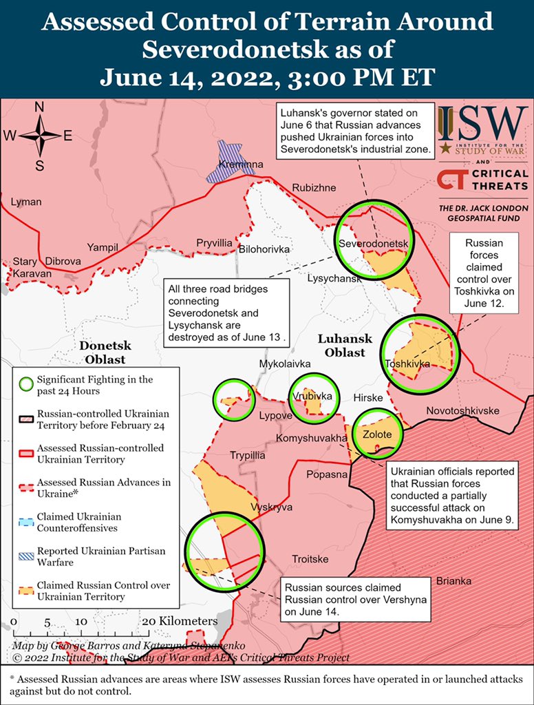2/ The Russian eastern offensive in Ukraine is making slow but measurable progress in the east (Severodonetsk area), in the north (Lyman area) and south (Popasna area). Operationally, these tactical advances have created a ‘pocket’ occupied by Ukrainian defenders.
