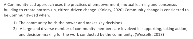 With community-led approaches, users trust community leaders to manage something using the "bottom-up" principle.