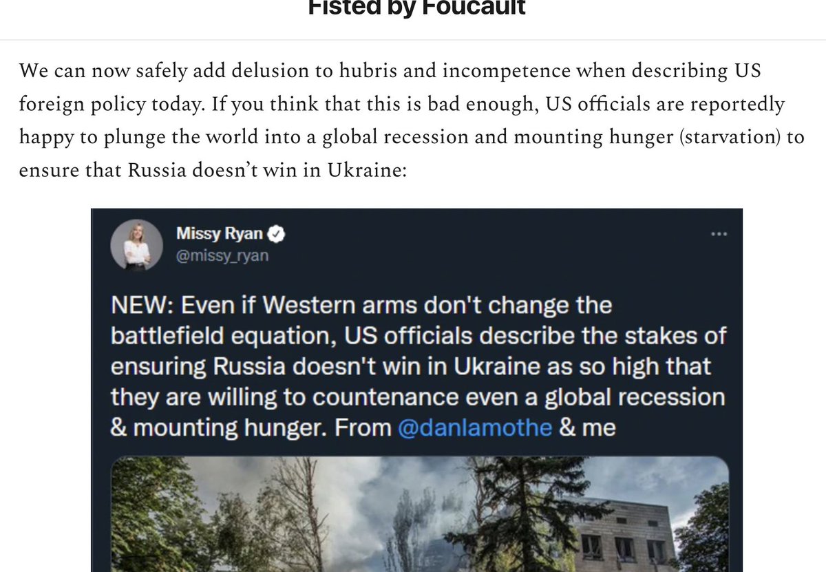 The official line now from neocon Washington is that Ukraine is not only now of such grave vital interest to the US that we must fight endlessly against Russia (contra Obama), but it's even worth the *sustained recessions* and *global hunger* it's now provoking to do it.