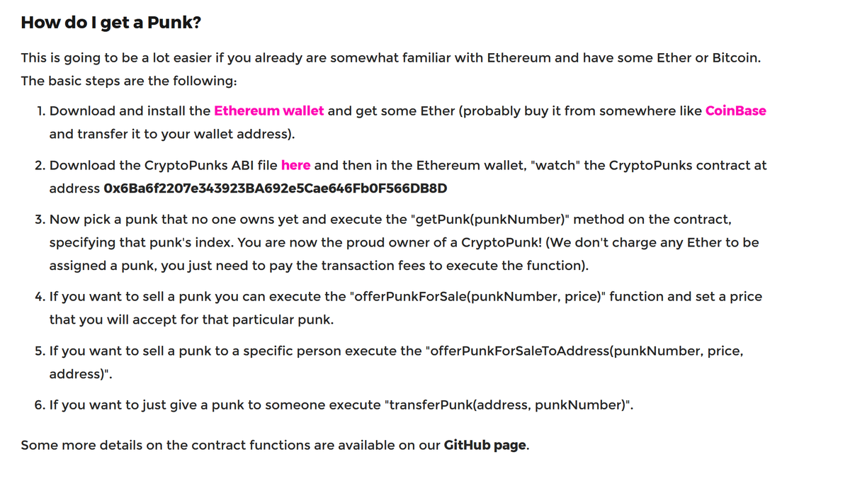 I specifically say claimed, because all punks were pre-minted. You had go to the website, find one that was available and execute the "getPunk()" method on the contract in order to claim one 👇