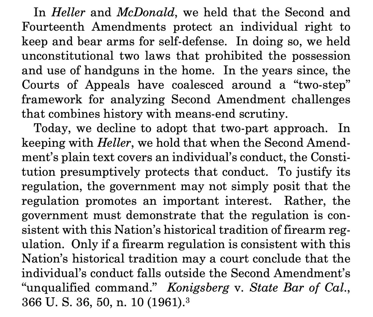 "New York’s proper-cause requirement violates the Fourteenth Amendment by preventing law-abiding citizens with ordinary self-defense needs from exercising their Second Amendment right to keep and bear arms in public for self-defense." supremecourt.gov/opinions/21pdf…