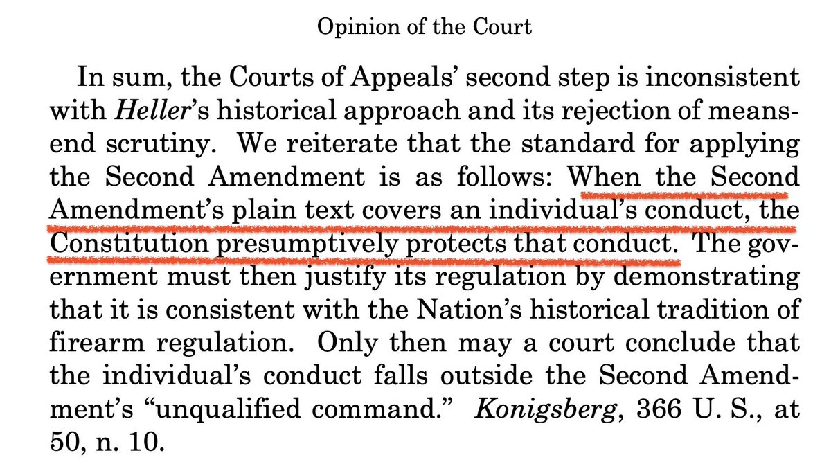 The Bruen opinion tries to make this crystal clear for creative leftists waiting in the shadows: when #2A plain text covers an individual’s conduct, the Constitution presumptively protects that conduct. A heavy burden is on the gov to justify the deprivation.