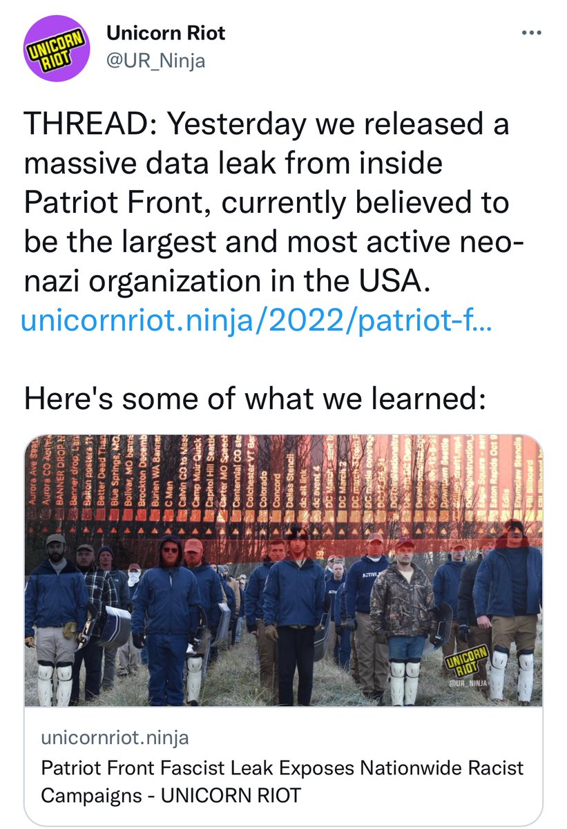 A few of the members have been arrested before. It’s possible they’re working down their charges. OR police have actual undercover officers in the group. unicornriot.ninja/wp-content/upl…