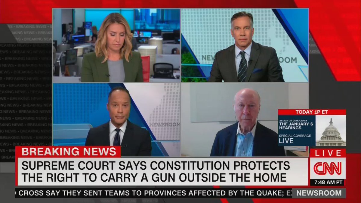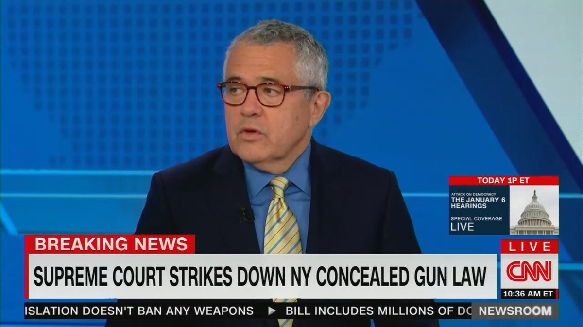 CNN fearing for the "quite modest" gun control package in the Senate, Toobin warns the ruling "expands the Second Amendment right" and scoffs at the "self-defense" argument for carrying.