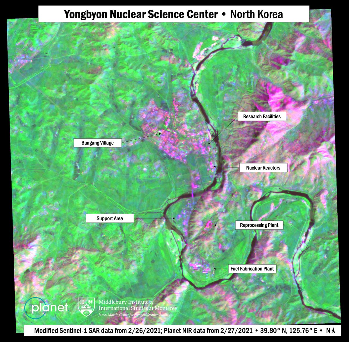 This is a composite image of North Korea's Yongbyon nuclear site that @SteveDLF made by fusing radar and near-infrared data from @ESA_EO and @planet. I think its a nice example of how our work is changing in response to new space-based capabilities. 🧵