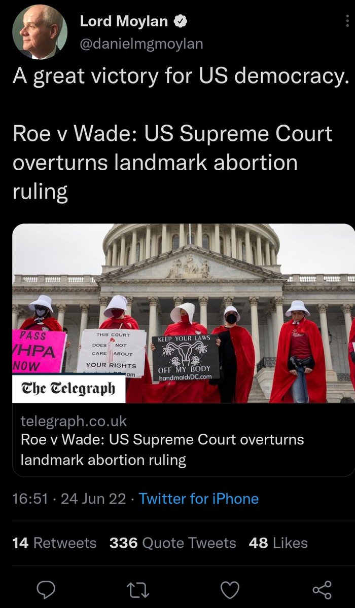 Moylan hates "unelected bureaucrats" in the EU but as an unelected peer he thinks unelected judges overturning abortion rights against popular opinion as the height of democracy