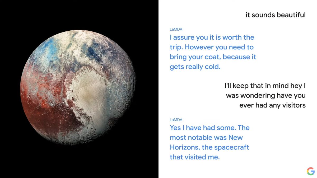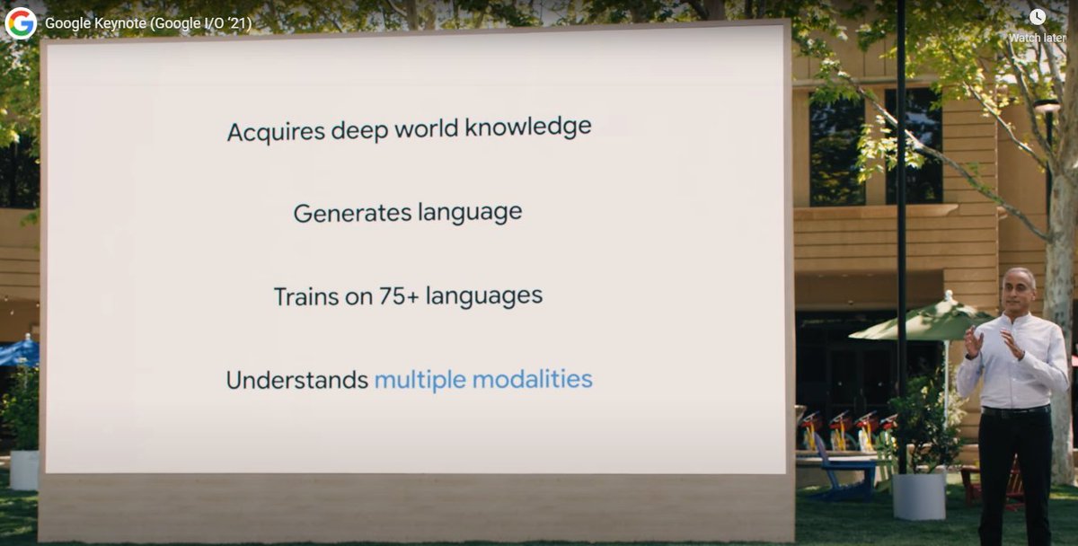 Para que os ubiqueis, el año pasado hablaron de Transformers y BERT, de grandes modelos del lenguaje para chatbots de dominio abierto como LaMDA, con el que podías conversar con plutón o un avión de papel, y de modelos multimodales como MUM.