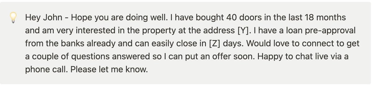 Because it’s extra work for me to review offers prepared by the agents, I write my own offers from my pre-built Docusign template #hack