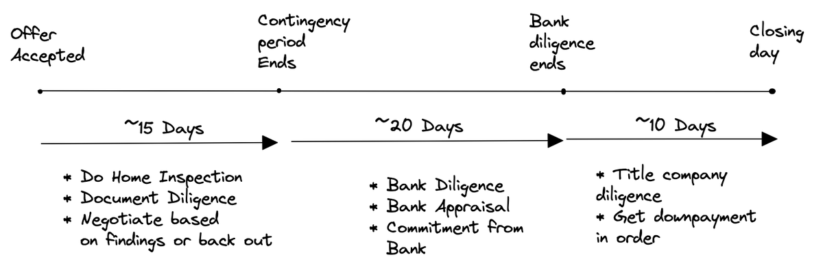 As soon as I receive the signed offer from the seller, the deal is live and all parties have 45 days(per my offer) to do the work to close.