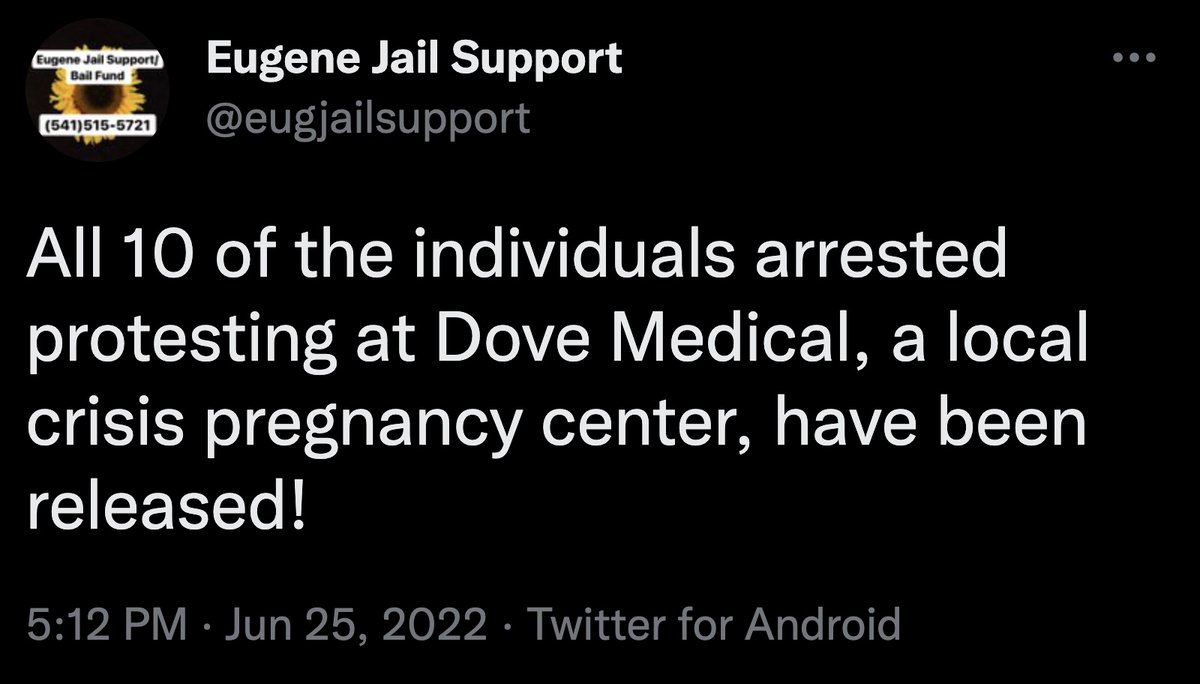 Arrested at the #Antifa riot in Eugene, Ore. on June 24 where 75 militants gathered to attack a pregnancy resource center. They were all quickly released.