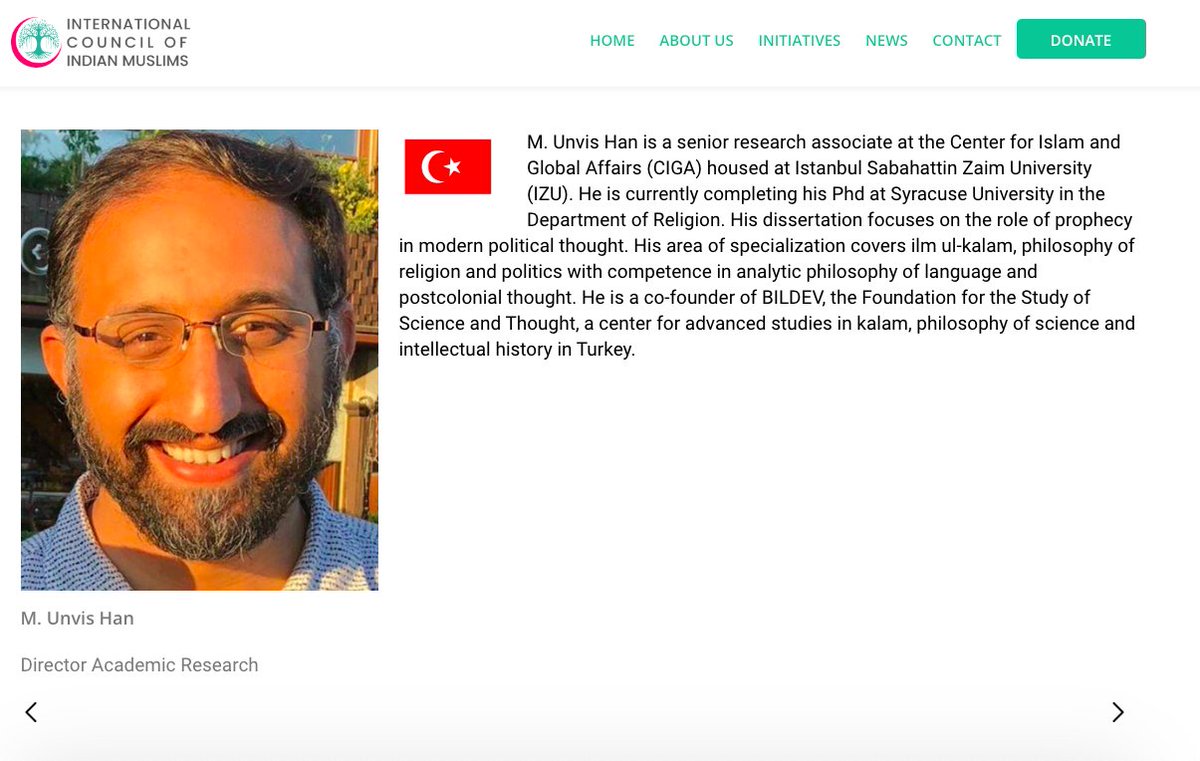 7. M.Unvis Han is a Senior Research Associate at Center for Islam and Global Affairs, Istanbul, Turkey. Currently, he is pursuing Phd at Syracuse University. Syracuse University, incidentally, participated in Global Dismantling Hindutva conference in Sept 2021. 9/12