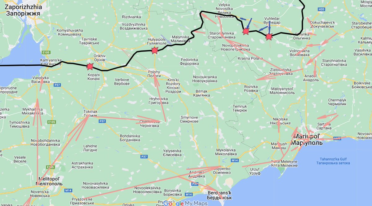 Las tropas rusas ha capturado varias localidades en el Este de Ucrania, entre ellas Pidlisne y Myrna Dolyna, que se suman a otras poblaciones recientemente ocupadas y dejan a la localidad de #Zolote, prácticamente rodeada.