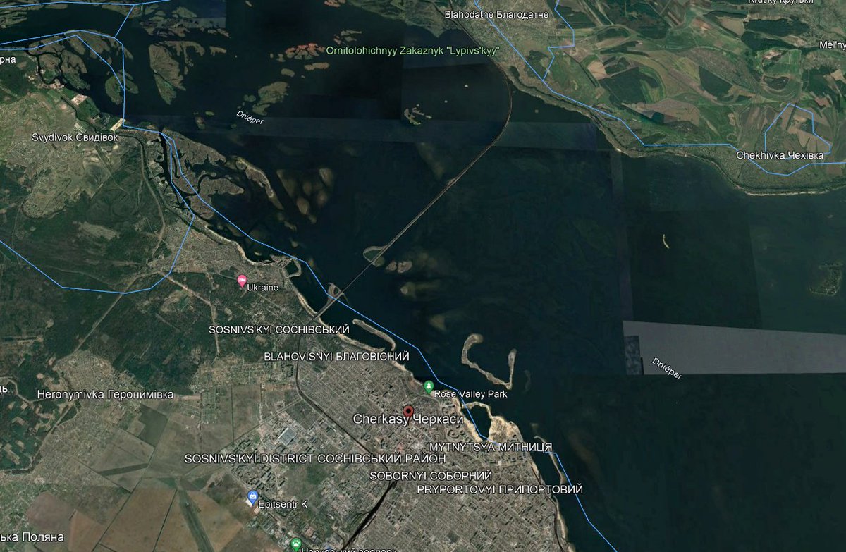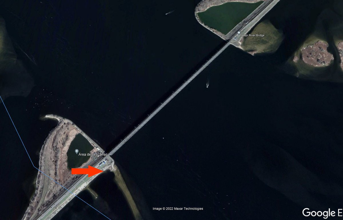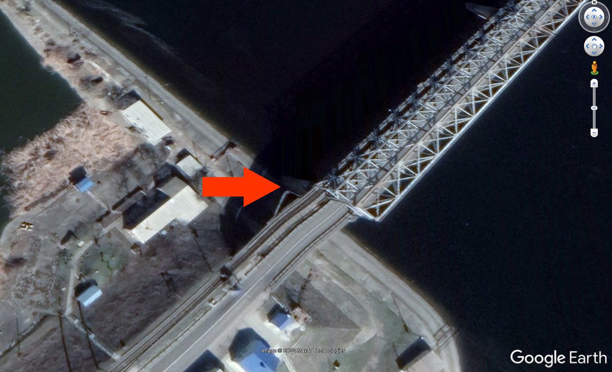 14. Los rusos han atacado el puente de la ciudad de Cherkasy, pero parece que este en concreto ha fallado y se ha empotrado contra el espigón situado en la cabeza del puente.