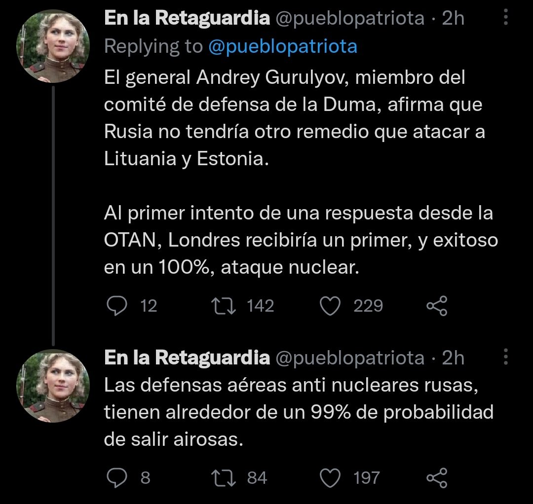 38. No sé qué tipo de alucinógenos tomarán, pero les recuerdo que el otro día les colaron un drone "del chino" en una refinería de Rostov que no volaba a más de 100 km hora. Por no hablar de la defensa antimisiles del crucero Moskva y los Tochka que son del siglo pasado.🤦