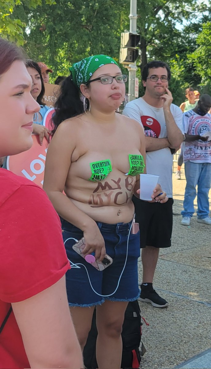 The same pro-abortion protestor tells a man who's glad Roe was overturned to "get a vasectomy."