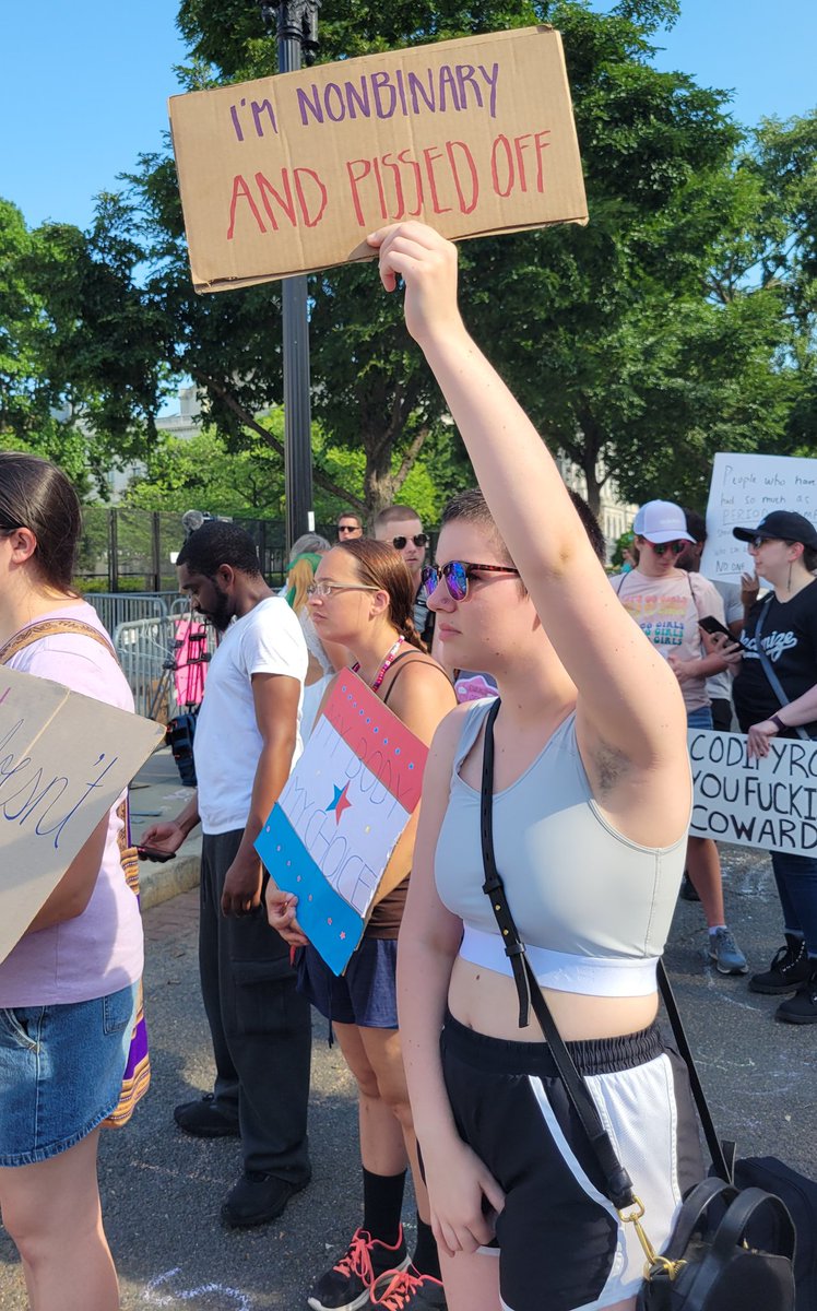 DC pro-abortion protestor tells a massive crowd outside the Supreme Court today: