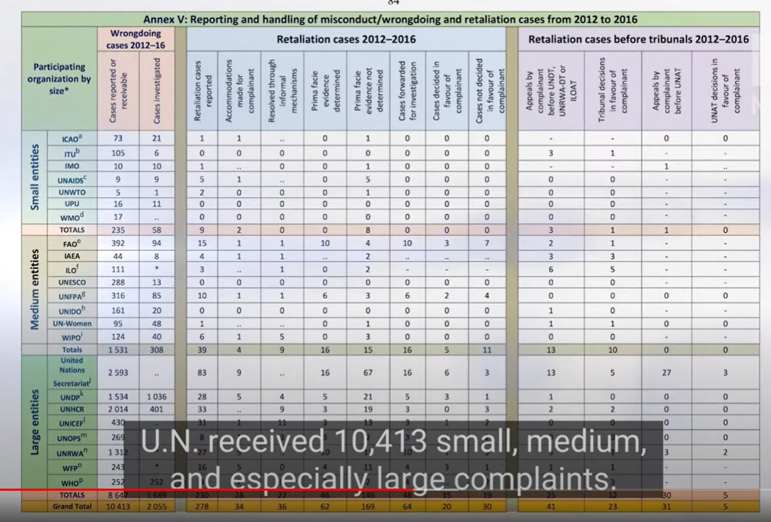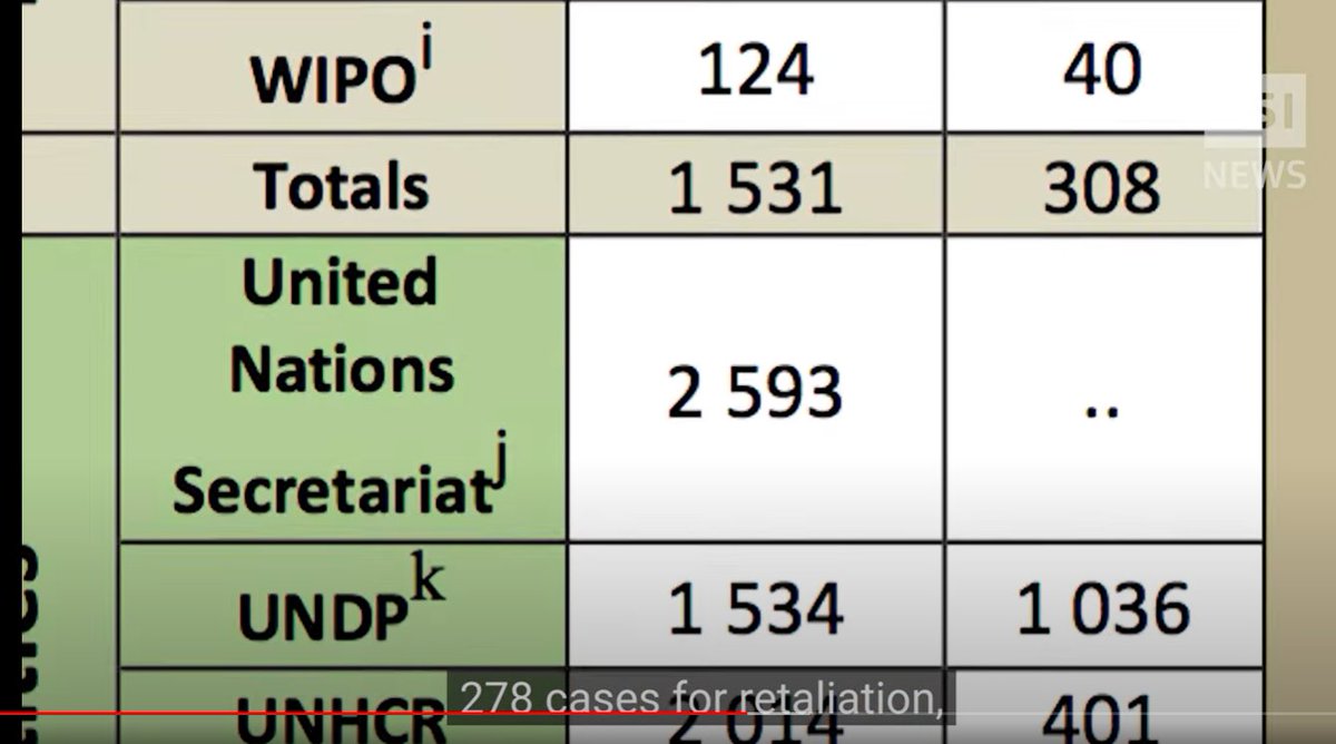 This supports the anecdotal evidence broadcast in the two documentaries regarding the operation of the #UNWhistleblowers system.