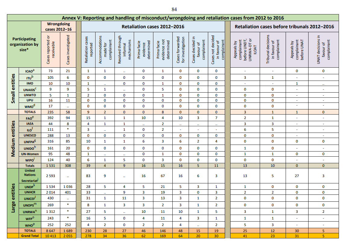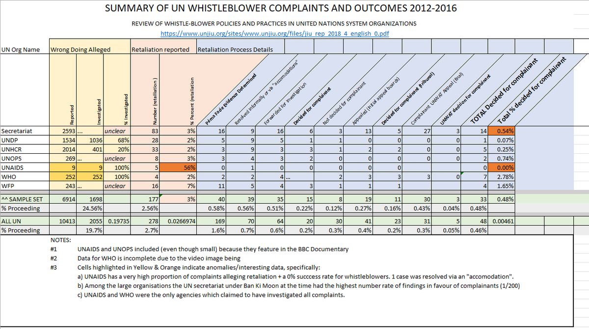 In an effort to get my head around the 2018 data I created this summary spreadsheet which looks at how the @UN Whistleblower system works.