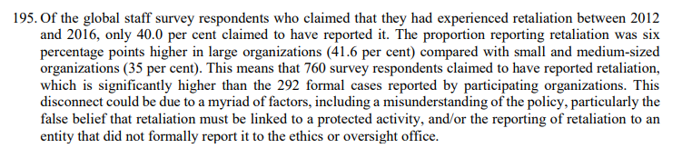 WRT to the @UN's Whistleblower Policy being implemented in a manner which appears to be designed to discourage its use. Which brings me to part two of this discussion - which I will post in a separate thread.