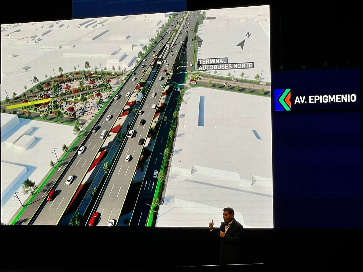 Siguiente nodo (y zona de mayor propensión a inundaciones): Av. Epigmenio Golzalez, se sustituye el actual puente por uno nuevo, carril confinado al centro para QroBus, apesar de la mayor amplitud bajo puente no parece haber indicación de retornos 🤔