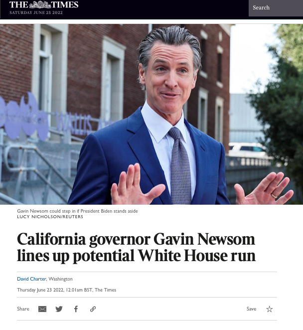 “The moves have been widely interpreted as a relatively young executive using the specter of a future presidential bid to shine a bright spotlight on himself. And they’ve been enough to elicit early brushbacks from allies of Biden and Harris.”