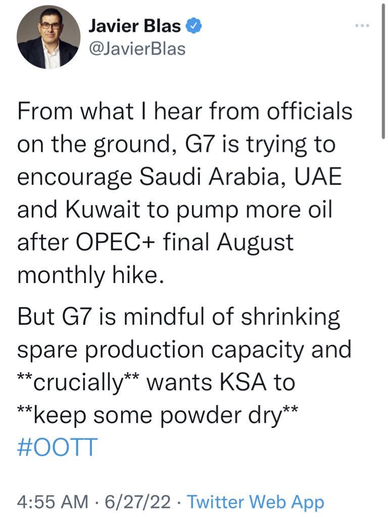 This is a game-changing revelation since Biden was counting on Saudi Arabia & UAE. They were the only two OPEC nations perceived to have spare capacity.