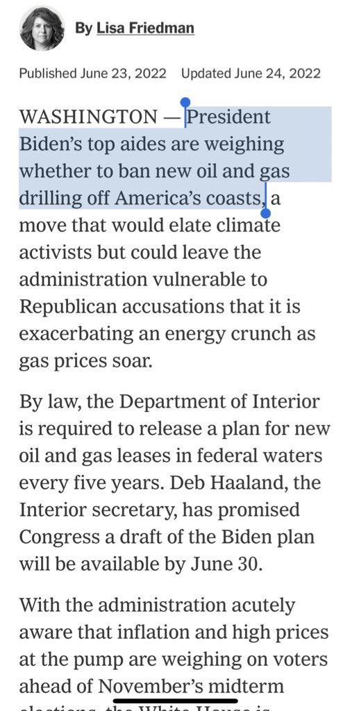 Biden’s demanding Arab nations produce more oil at the same moment he is considering a total ban on new offshore oil & gas drilling, 6 days after delaying new on-shore O&G drilling, and 1 month after killing a 1M acre O&G lease sale in Alaska. It’s as insane as it looks.