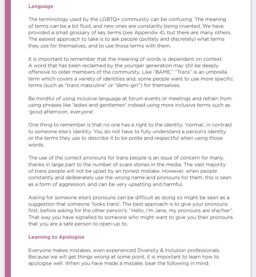 Section 1 - who are the seldom heard and under represented groups? LGBTQIA+ people get 4 of the 14 pages. One thing you will need to do is ‘learn to apologise’.