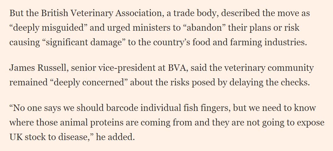 @Mrs_Pig What about the vets? Well, BVA @BritishVets vice president James Russell @uttoxeterjames is "deeply concerned" about Rees-Mogg's quips about fish-fingers posing no dangers...which totally misses the point. /4