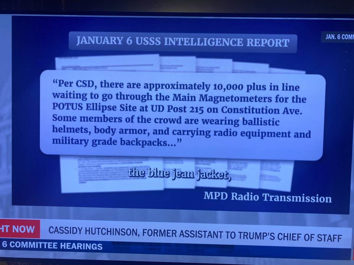 Taped depositions are shown in which Hutchinson describes a Dec 2020 convo with former DNI Ratcliffe about 1/6. “He expressed that he was concerned that it could spiral out of control and eventually be dangerous.” she says.